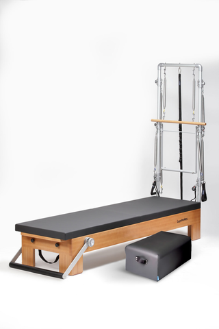 Ce modèle est fait avec tour, ce qui octroie à la fonctionnalité de la machine un haut dégrée de versatilité en permettant la réalisation de tous les exercices propres du Reformer, ainsi qu’un gran éventail d’exercices du Cadillac.