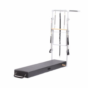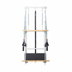 Un trapecio para Pilates cuenta con una torre equipada con una barra giratoria, la cual permite realizar diferentes ejercicios para estirar y aumentar la flexibilidad del cuerpo. Se utiliza para complementar los ejercicios de suelo o mat, ya que tiene elementos comunes con el Cadillac que se encuentran colocados en una columna que hay a uno de los lados de la colchoneta.